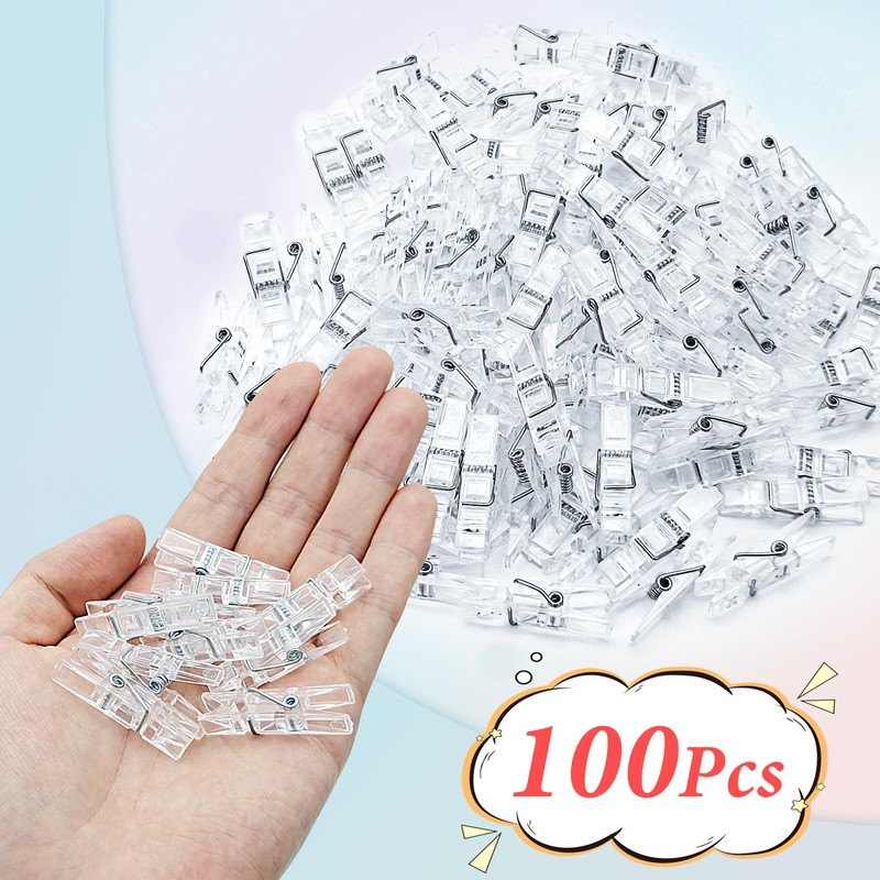WisePoint Mini Clear Photo Clips 100pcs, Plastic Photo Clips Photo Clips Cute Plastic Clips for Crafts, Gift Wrapping, Picture Hanging, Photo Display (transparent)