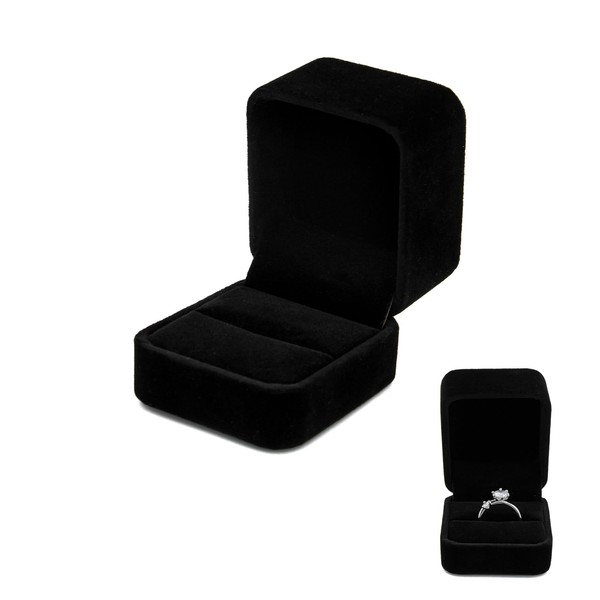 WisePoint Ring Box, Velvet Wedding Ring Box Engagement Ring Box, Single Ring Organiser Box Small Ring Boxes for Engagement, Proposal, Wedding,Ceremony, Valentines Day (black)
