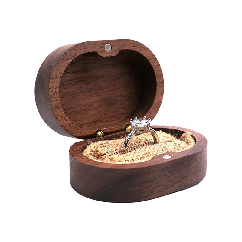 - Wood+Sponge: The exterior of this engagement ring box is an oval wooden shell with a unique texture, providing a smooth and comfortable touch. The interior is a soft sponge, which can firmly fix the ring and prevent it from slipping off
