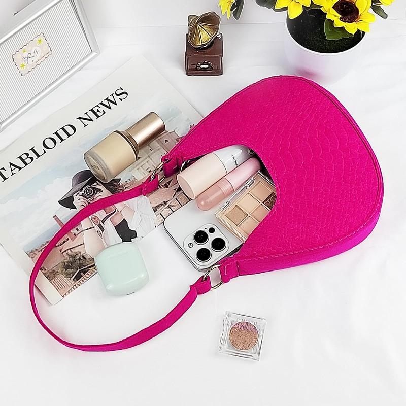 - Textured Felt Fabric: The small shoulder bag is made of soft felt fabric, which is comfortable to touch. The fish-scale-shaped texture is low-key and distinctive, which makes the bag look more exquisite