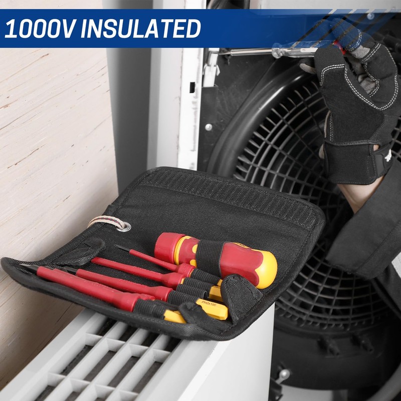 - Space-saving Bag: The VDE screwdriver set come with durable storage bag, All screwdrivers range in space saving roll-up bag with elastic band straps, hook and loop stripes to keep tools safely and easily when transport, hard-wearing Polyester fabric build to last.