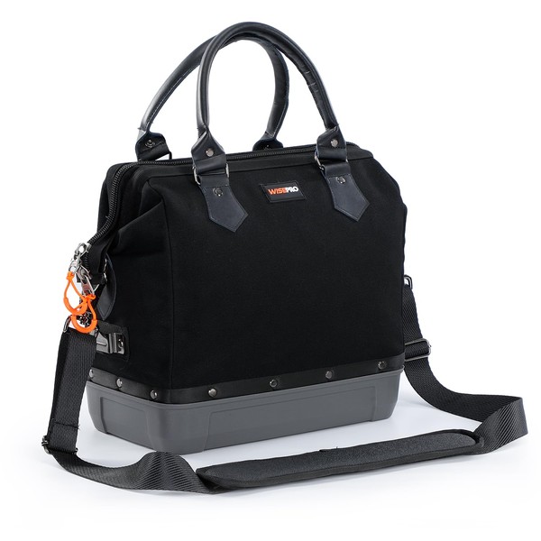 WISEPRO Heavy Duty Canvas Tool Tote Bag, Multi-Purpose Flame Resistant Bag with Waterproof Hard Base and Leather Handles for Electrician, Technician, Plumbing