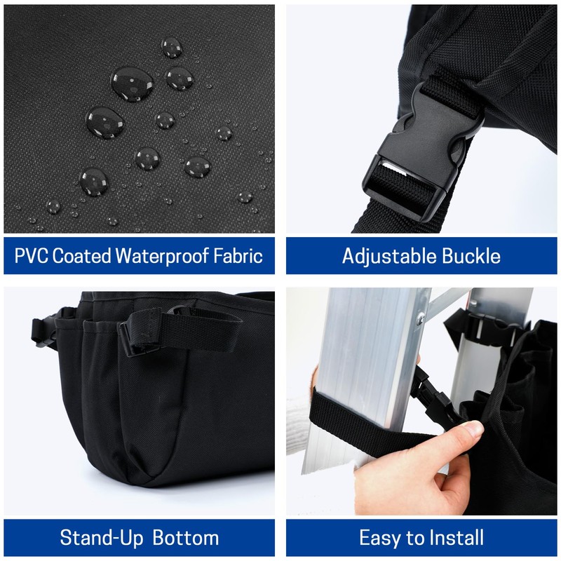 - Stable and Easy to Install: Featuring 4 sturdy buckles, the ladder pouch stays firmly attached to the ladder, preventing movement or detachment during work and enhancing safety. It is easy to install and can be quickly removed.