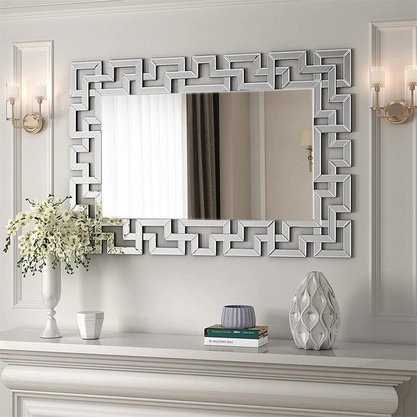 Beautiful Art Mirror: Geometric frame little glass piece wrapped around the silver mirror, that giving a modern beautiful look, adding instant glamour and interest while increasing natural light and maximizing the sense of space, enhances the interiors of your home