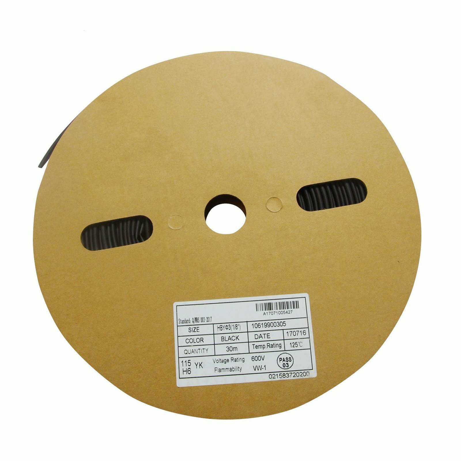 Wish2016 Heat Shrink Tubing Tube Cable 100 FT. 100' Feet BLACK 1/8" 3mm Polyolefin 2:1 UL