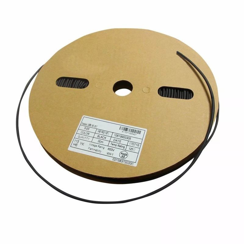 - 1/8" (ID) x 100 feet Length Spool 2:1 Ratio Polyolefin Black Heat Shrink Tubing