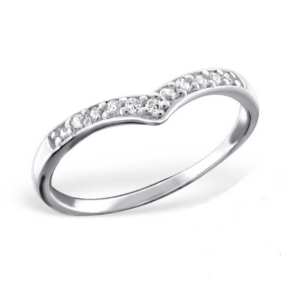 - Minimalist wishbone midi ring with clear stones. Made from hypoallergenic solid sterling silver