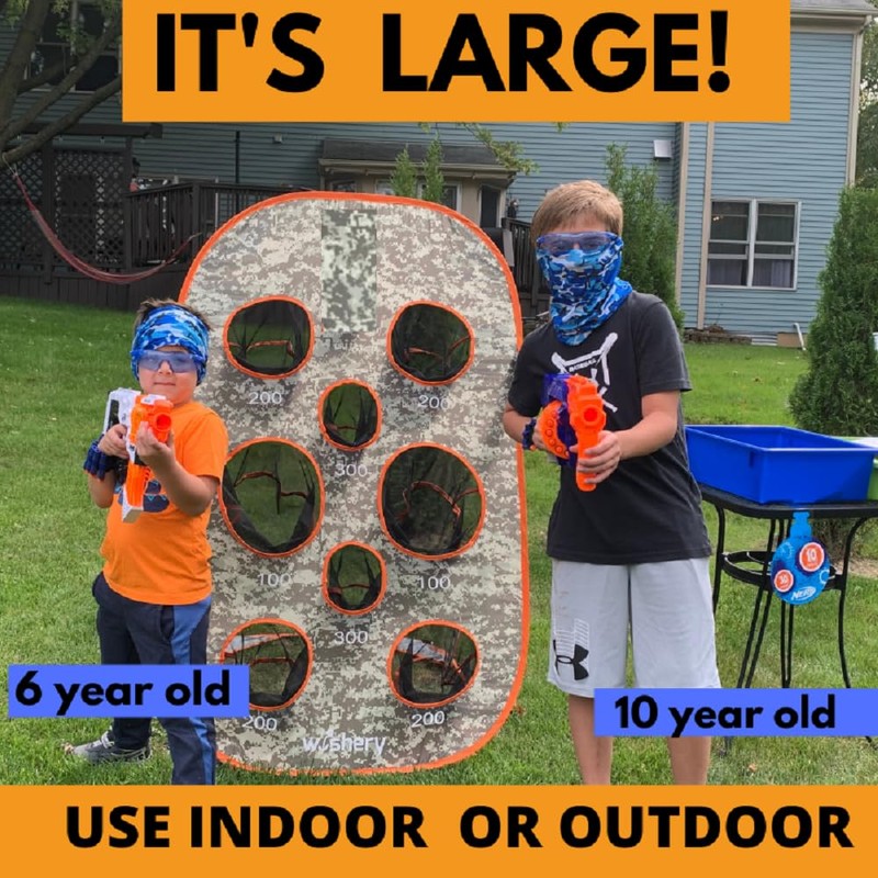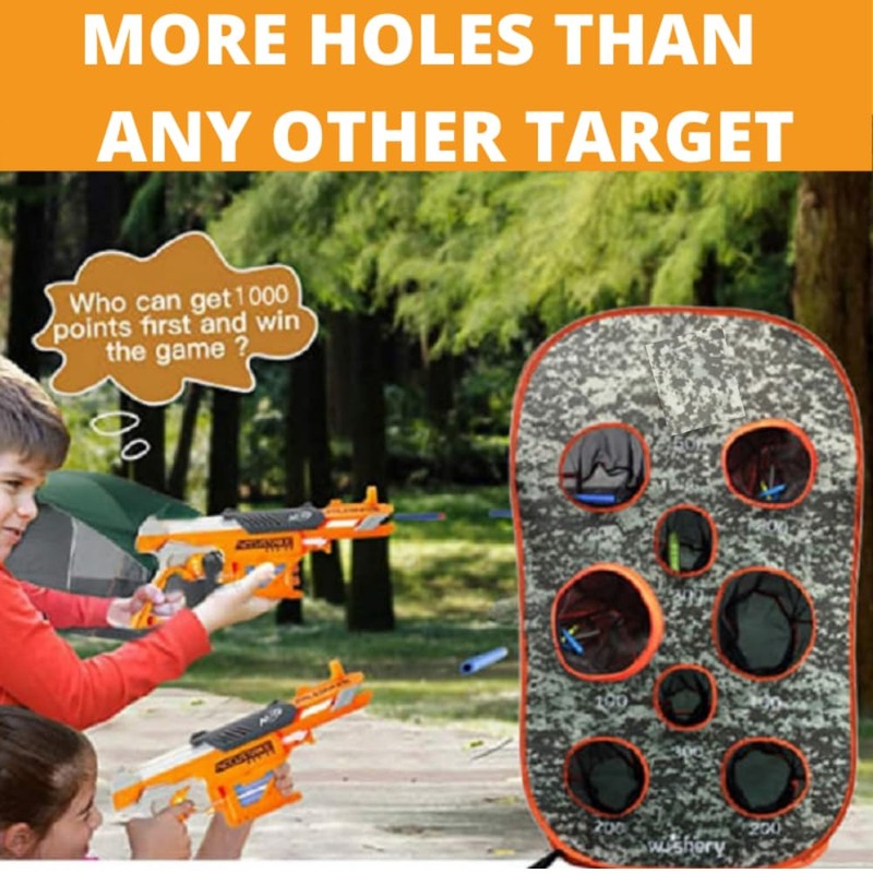 Wishery Large Nerf Gun Target for Kids Shooting Practice with Storage Net - Shooting Game Toy for Ages Boys 5 + Years Old. Outdoor, Indoor Nerf Party, Nerf War, Birthday - Christmas or Nerf Gift