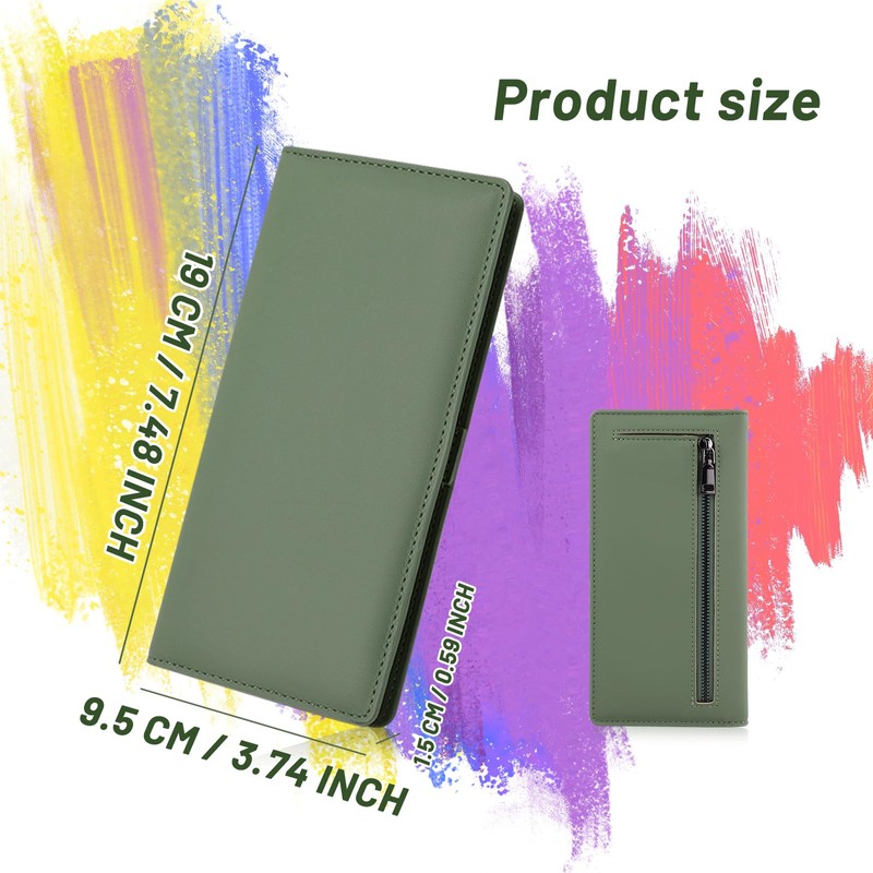 WishLotus Slim Wallet for Women, Bifold PU Leather Long RFID Blocking Wallet Large Capacity Credit Card Wallet with ID Window Coin Zip Pocket Credit Card Holder for Men (Green)