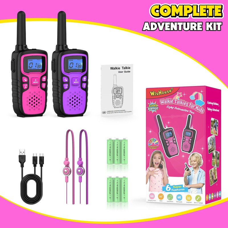 • Rechargeable and Eco-Friendly: Say goodbye to the hassle of purchasing batteries. WisHouse M9 Kids' Walkie Talkies come with rechargeable batteries and a micro USB 2-head charging cable. Enjoy a cost-effective and eco-friendly solution, all included in the package.