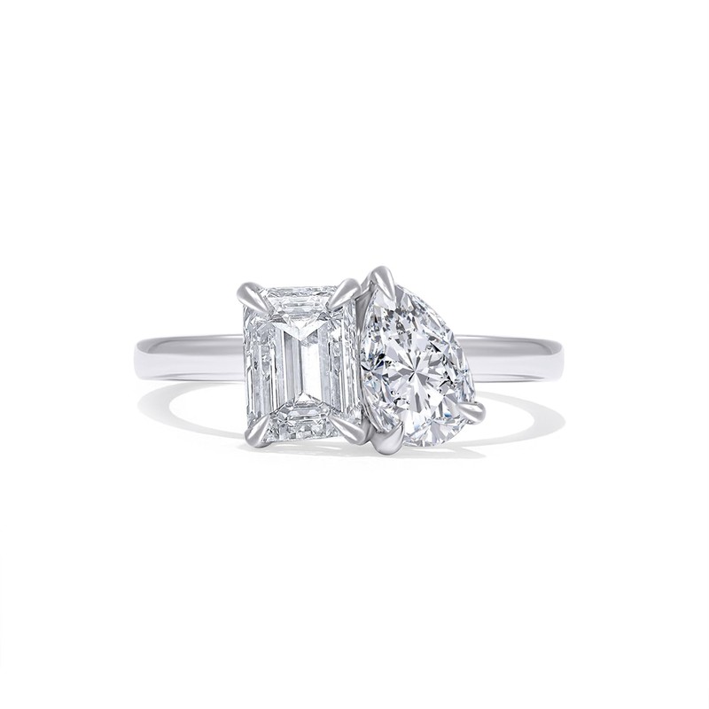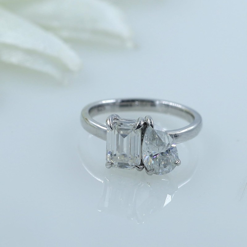 Wishrocks 1 Cttw Toi Et Moi Engagement Ring For Women 6X4MM Emerald Shape & 7X5MM Pear Cut Lab Created Moissanite Ring In 14K White Gold Plated Sterling Silver (VVS1, 1.00Cttw) Size 5
