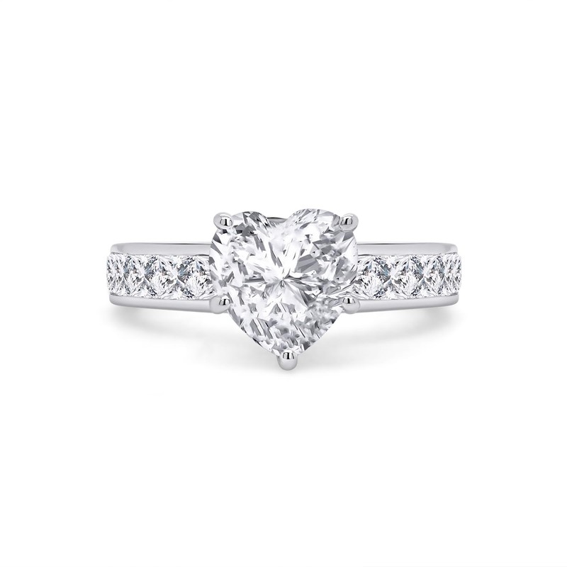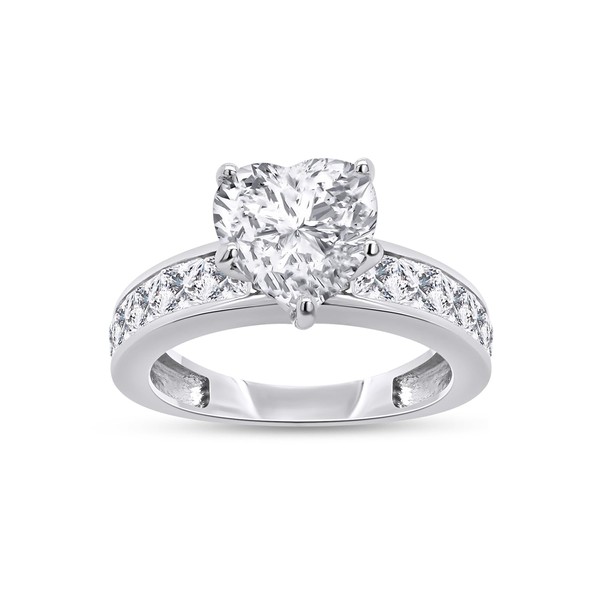 - Gemstone : Center 7MM Heart Cut Lab Created Moissanite Diamond Having Clarity Of VVS1 Moissanite Diamond Setting : Prong & Channel Setting Type, Total Carat Weight : 2.50 Carat (Cttw), Very Good Cut, Stamped With 925. We do Custom sizing as per your needs. If The Ring Size is not mention in the listing, Please Email us with your size once you placed the order.