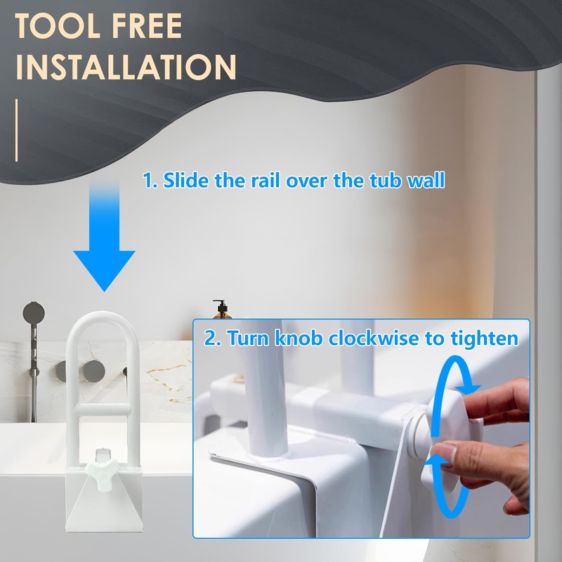 - Secure Locking Mechanism: Equipped with a secure locking knob, this portable and removable safety rail firmly attaches to the bathtub, ensuring that you have a reliable support bar for bathroom safety. The easy tool-free installation allows for quick setup, making it a hassle-free addition to your home