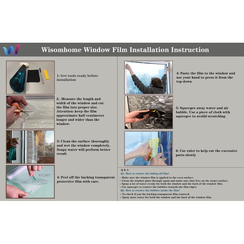 - [Easy To Install] – Simply follow 6 steps to complete the installation. No glue is required for installation. Please spray lots of the water to the window and the back of the film. The static window film is reusable, tear off carefully if you want to relocate the film and then follow the same steps to complete the installation.