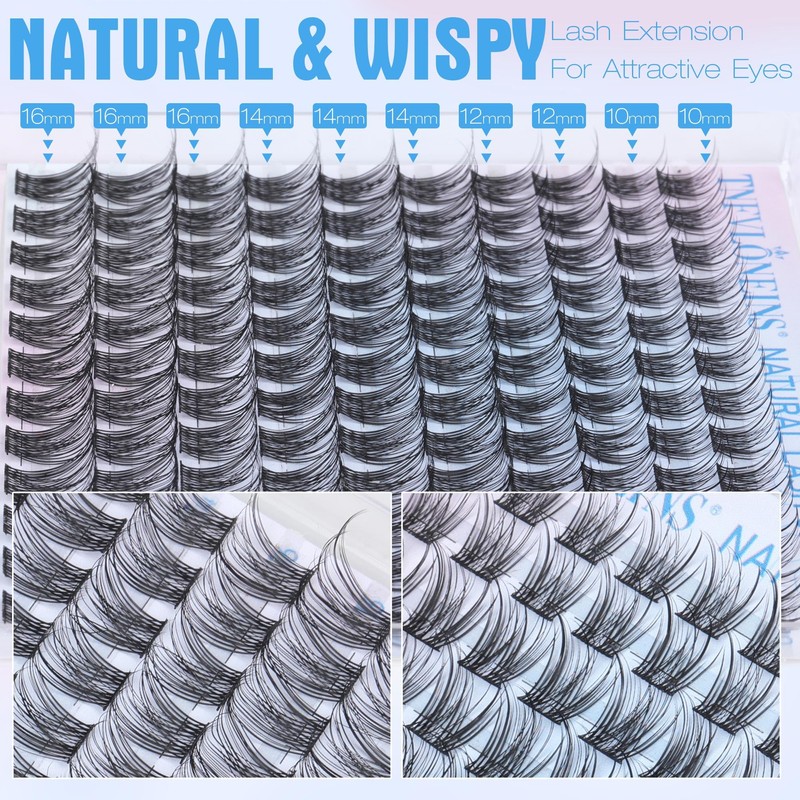 - Vivid Wispy Lash Clusters: TNFVLONEINS natural lashes clusters are made of 0.07 ultra-thin fibers. You can get vivid and natural eyelash extension look, no burden on your eyes. Wispy cluster eyelash extensions fit perfectly to your eyes, giving you a natural look while making your eyes sparkle
