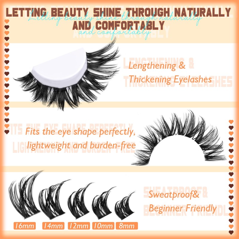 - 1.Premium Soft Lash Clusters Material: Wispy eyelash clusters crafted with ultra-soft faux mink fibers for a feather light, weightless feel.Cluster lashes material is rigorously tested for irritation-free wear—so you can wear lashes clusters without compromise.