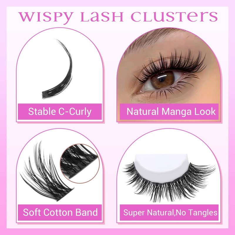 - 【Easy to Apply for Lash Beginners】Master DIY lashes in minutes! Our eyelash clusters come with a tapered base for effortless placement—no pro skills needed. Simply dip in glue, press near your lash line, and voilà! The lash clusters wispy blend flawlessly, hiding gaps or mistakes. Say goodbye to salon trips and hello to hassle-free beauty!