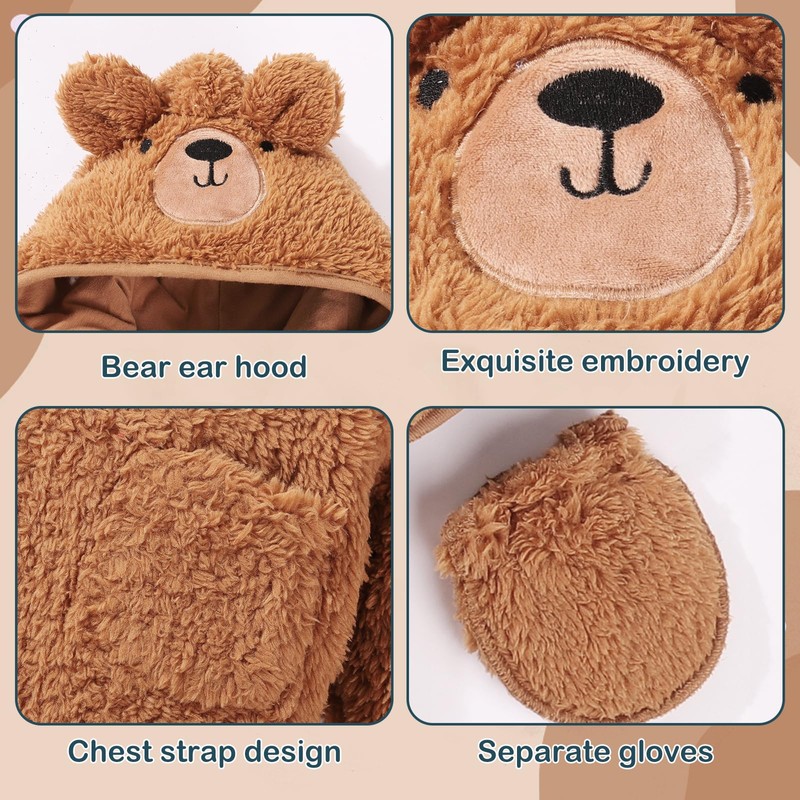 - Soft Skincare Fabrics: All of our baby bear outfit are made from soft and delicate upgraded fabric, weighing 280g, which is fluffy and warm, gently wrapping around your baby without irritating their delicate skin and making them feel cozy and comfortable
