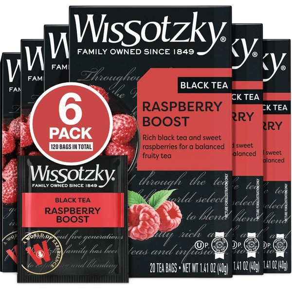 Wissotzky Raspberry Boost Black Tea (6 Pack - 120 Tea Bags) | Bold Berry Tea | Antioxidant Rich | Fruity Black Tea Bags