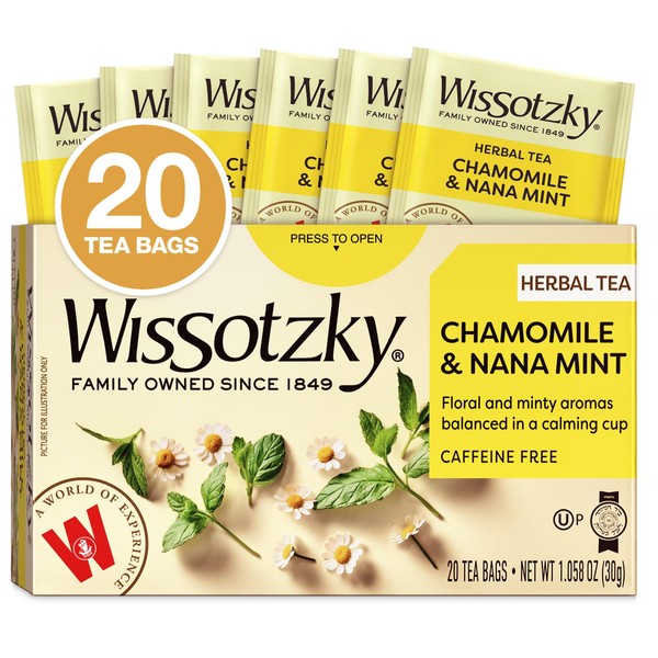 Wissotzky Chamomile Tea with Nana Mint, Herbal Tea, 20 Tea Bags | Caffeine Free | Soothing Blend | Sleep Support