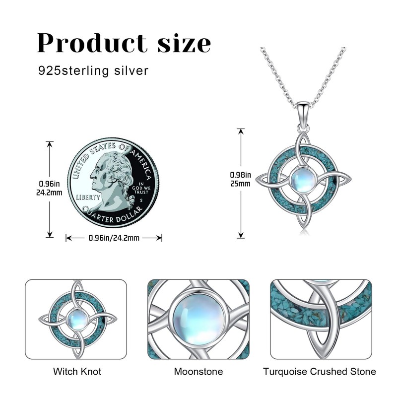 Witches Knot Necklace Sterling Silver Celtic Pendant Necklace Turquoise Moonstone Pendant Witches Mother's Day Jewellery for Women Mum