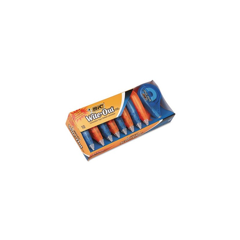 Fix mistakes fast. The tape applies dry, so you can write over it instantly! The tape is tear-resistant and film-based for easy and convenient correction. It is fast, clean and easy-to-use. The translucent body provides visible tape supply. Stock up and save! Line Coverage: 1; Tape Width: 1/6""; Tape Length: 472""; Case Color(s): Blue/Orange.