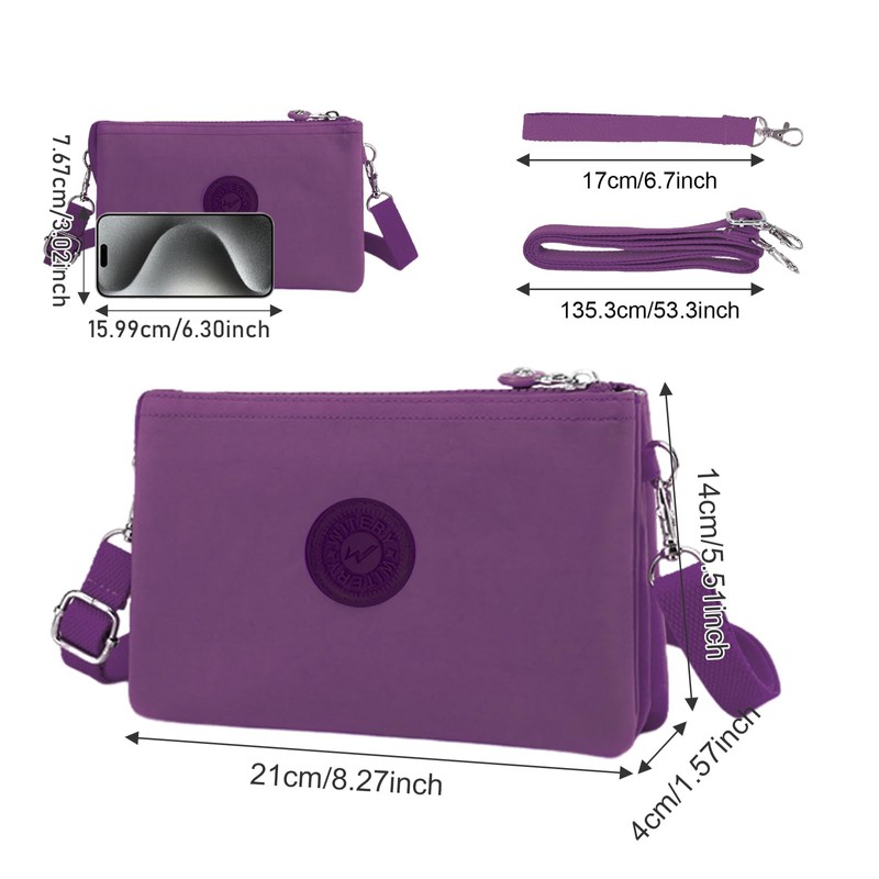 WITERY Wristlet Purse for Women - Waterproof Nylon Multi Pocket Small Clutch Purse with Shoulder and Wrist Straps, Purple