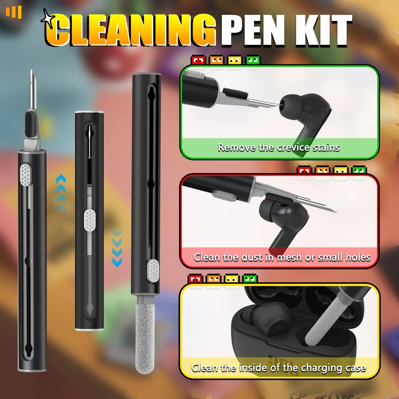 - 【Practical Accessories】: Equipped with a 3-in-1 cleaning pen kit, the metal tip can remove crevice stains, the microfiber brush can remove dust from the mesh or small holes, and the flocked sponge cleans the inside of the charging box to keep your earphone and charging box clean as new. Equipped with an anti-lost keychain that can be easily attached to a backpack, key chain or belt loop for easy portability. Equipped with 3M adhesive tape that can be used to fix the upper protective cover to your headphone case.