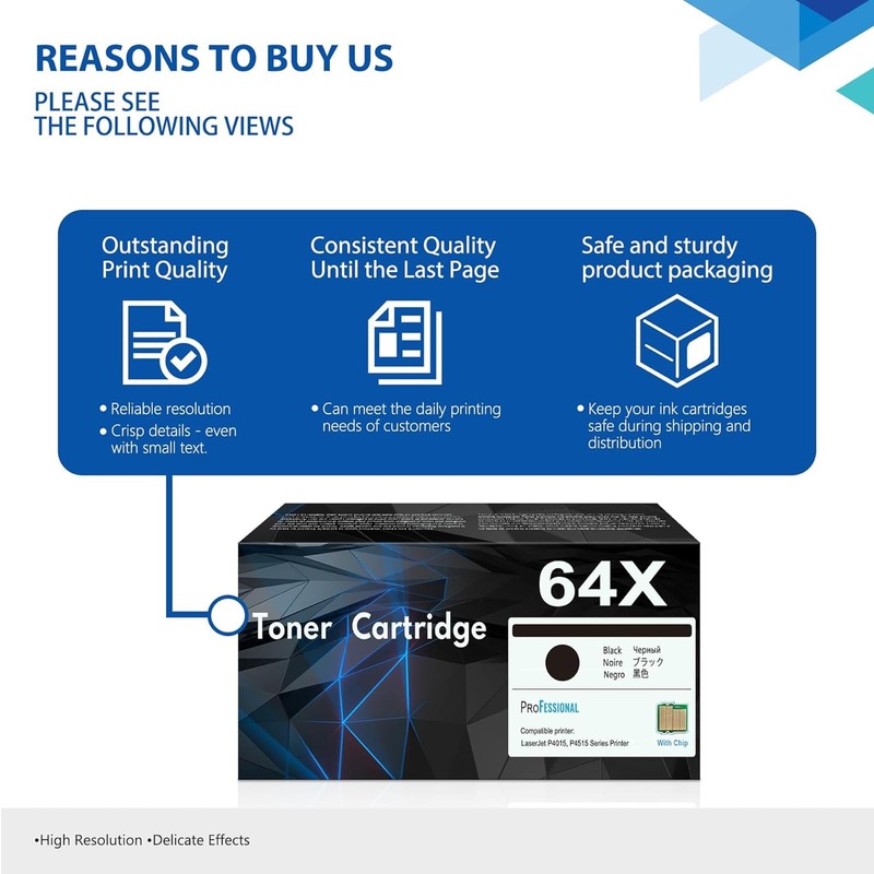 - High Quality: Our CC364X 64X Black Toner Cartridge is manufactured to meet the standard specifications and provide the printing experience vital for your printing productivity
