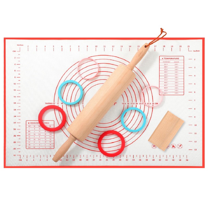 • Food-grade silicone mat: 23.6“ Lx 15.7” W,Precise measurement for effortless rolling,non-stick, safe and durable.The clear graduated ring eliminates the need for additional measuring tools. You can directly measure the size of the dough on the mat.