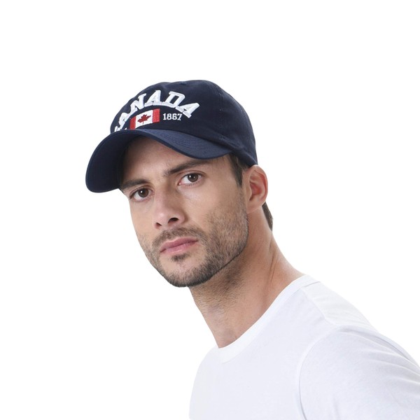 WITHMOONS Cotton Baseball Cap Canada Maple Flag Embroidery Dad Hat LX1382 (Navy)
