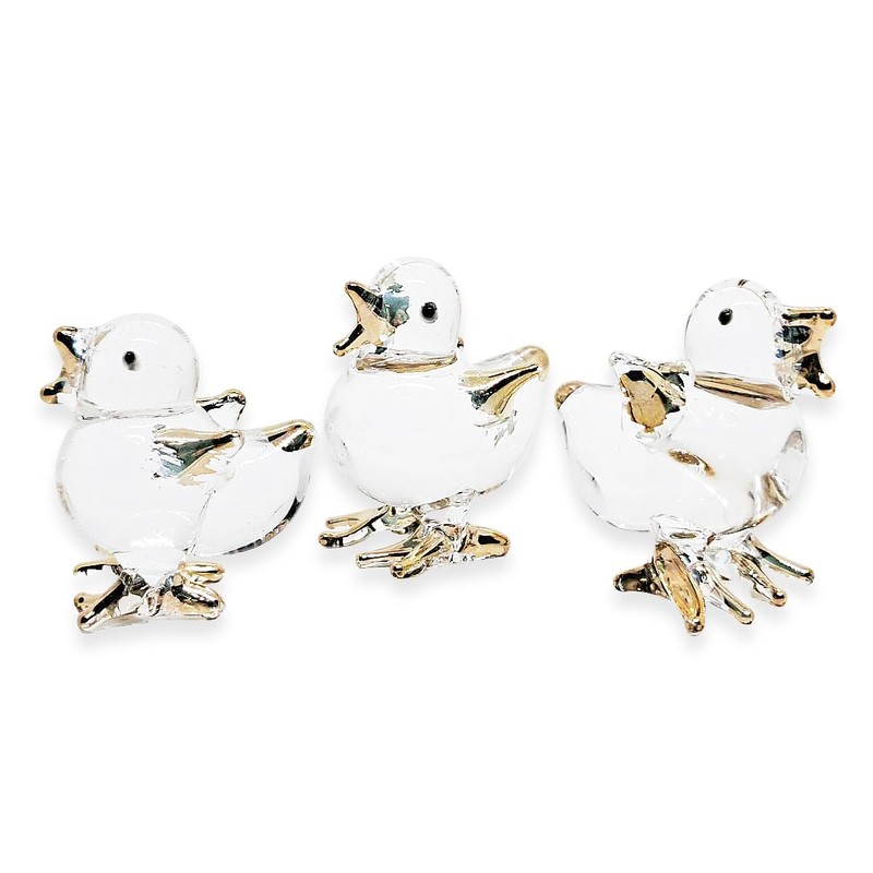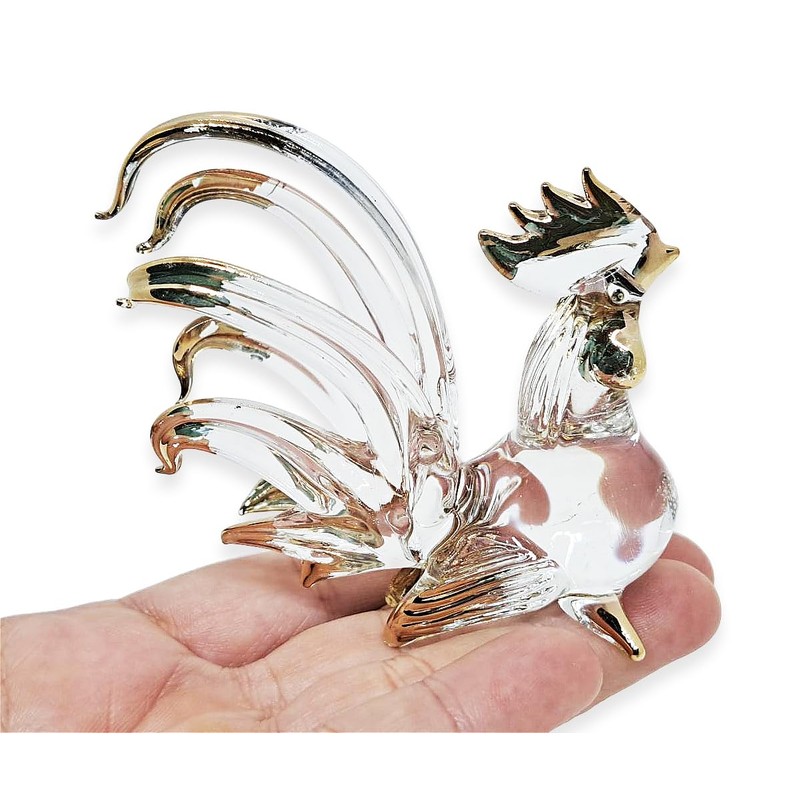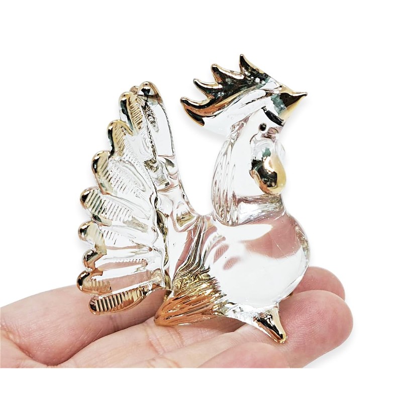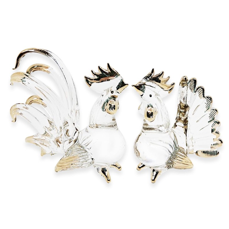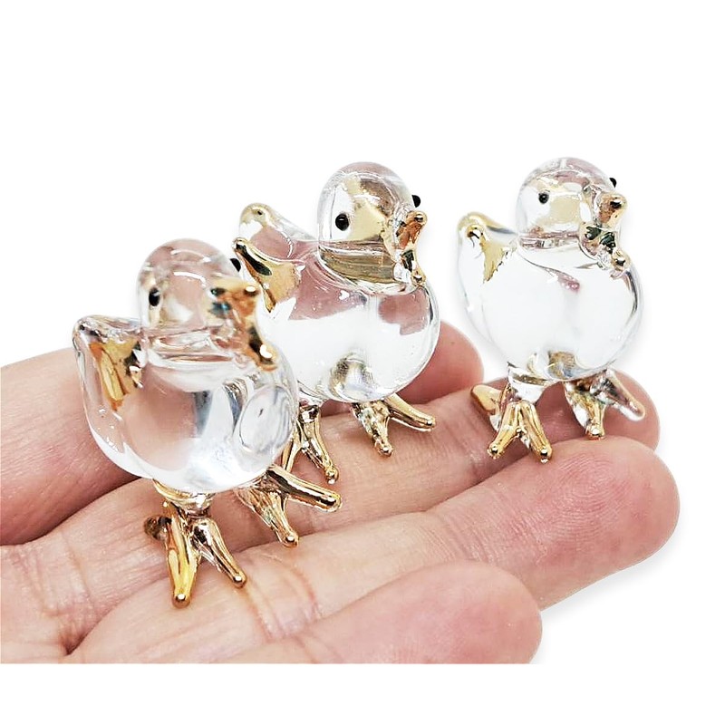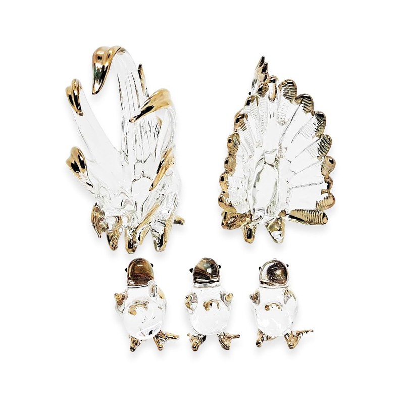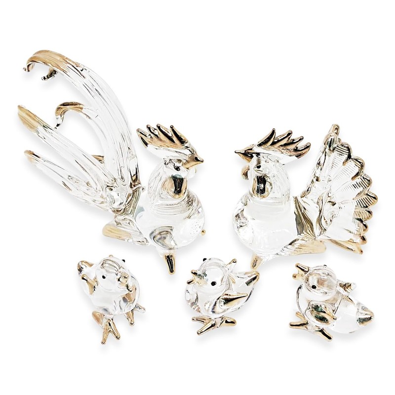 WitnyStore Tiny 2½" Clear Gold Chicken Family Figurine 5 Pieces Set - Miniature Hand Blown Glass Chickens Hen Rooster Chicks Fowl Poultry Bird Animals Crystal Decorative Collectible Figure Décor Gifts