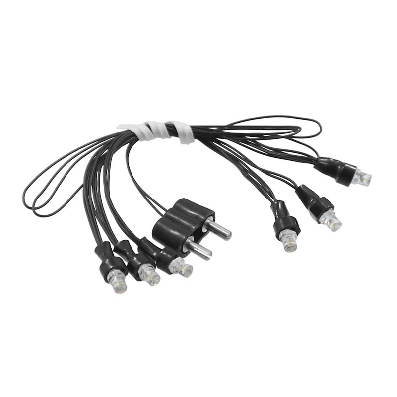 - 3.5V LED string lights with 6 LEDs, cable and plug. Ideal for dollhouses, nativity scenes or model making.