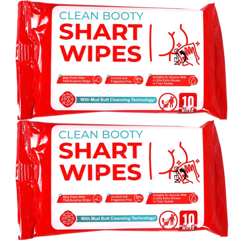 What’s in the box?You will receive 2 packs of "Clean Booty Shart Wipes" with 10 non-alcoholic wet wipes each (20 total). Wipes NOT FLUSHABLE.
