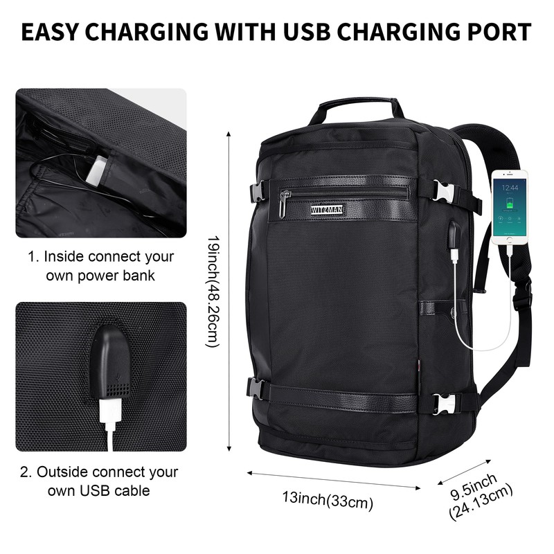 - MATERIAL AND DIMENSION: This travel laptop backpack is made of high quality nylon fabric.Black polyester lining; Dimension: Approx 13"L x 19"H x 9.5" W(L: 33.02x H 48.26 xW 24.13 CM); Weight: 1.5kg (3.31 lbs). A 30 to 52 inch removable and adjustable duffel strap; Can hold your 17 inch laptop;