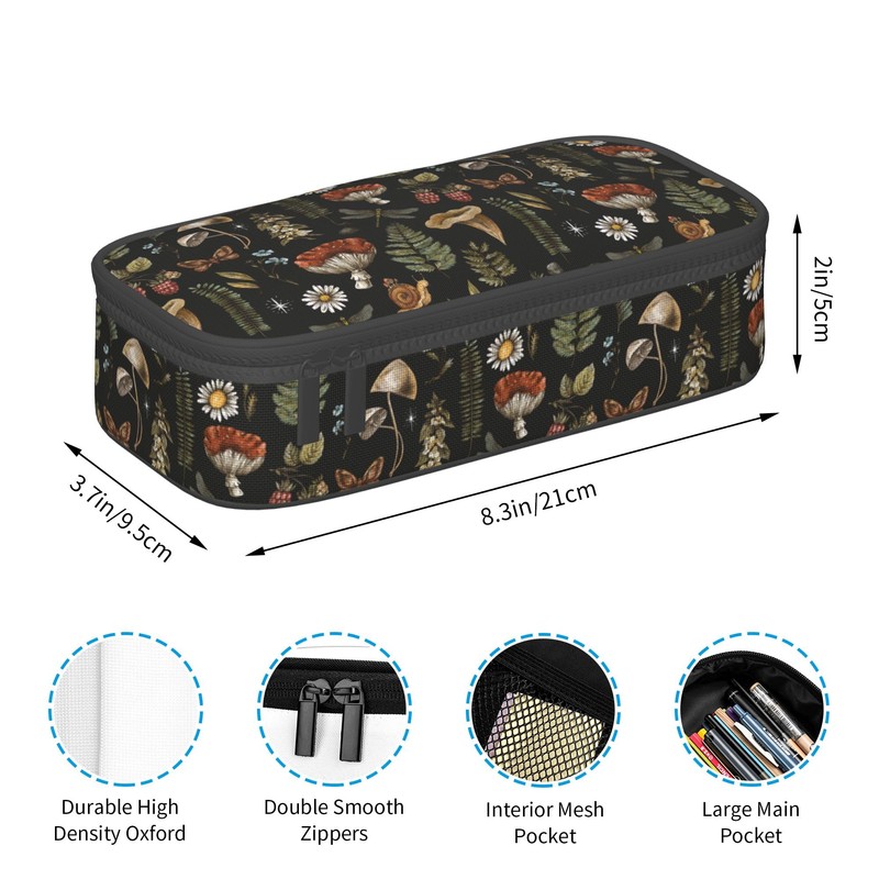 wiuurs Mushroom Pencil Case Big Capacity Pencil Bag with Zipper Stationery Organizer for Supplies Office College Adults