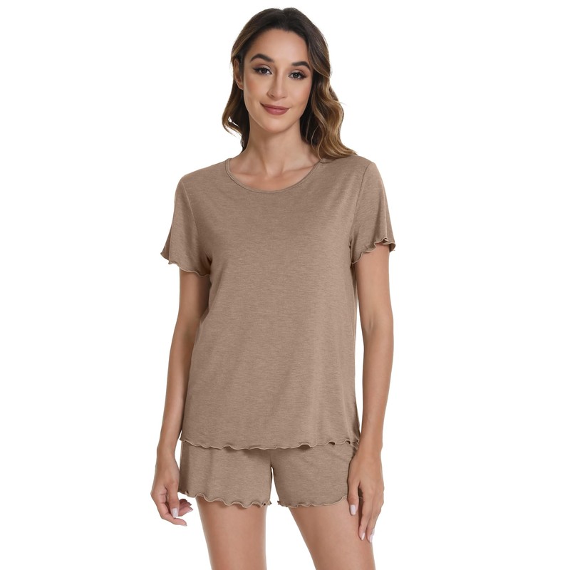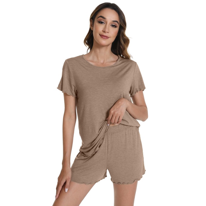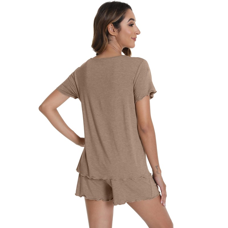 - 【CUTE PAJAMA SET】Lightweight and casual shorts lounge set features relaxed style, short sleeve with ruffle hem design and classic scoop neck, give you a cute look. The pajama shorts with elastic waistband can give you a comfortable and free feeling.