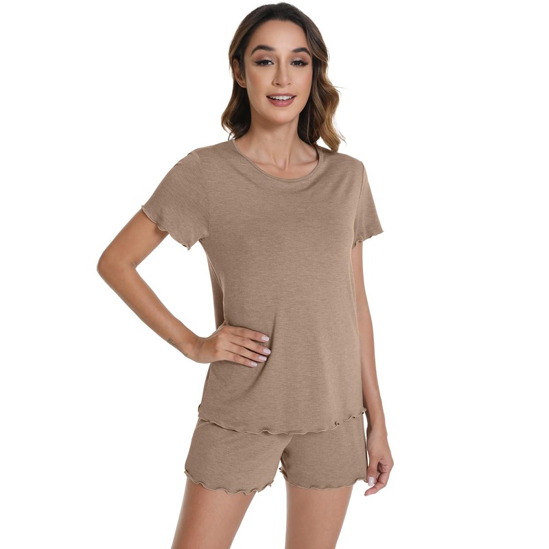 WiWi Pajamas for Women Short Sleeve Top and Long Pants Lounge Sets Bamboo Viscose Pajama Set Pj Sleepwear S-XXL, Camel, X-Large