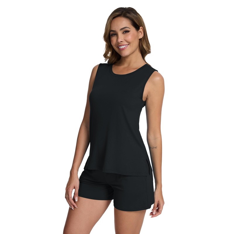 - [SIMPLE DESIGN]: The round neck sleeveless shorts home wear set has no extra design and is classic and timeless! Luxurious hidden side pockets, both beautiful and convenient