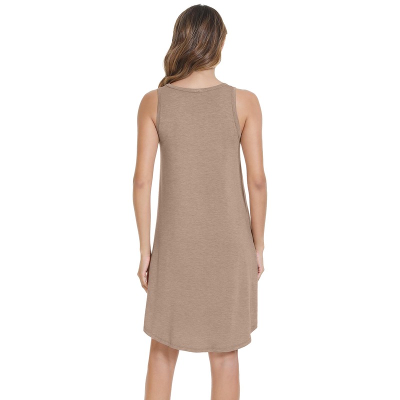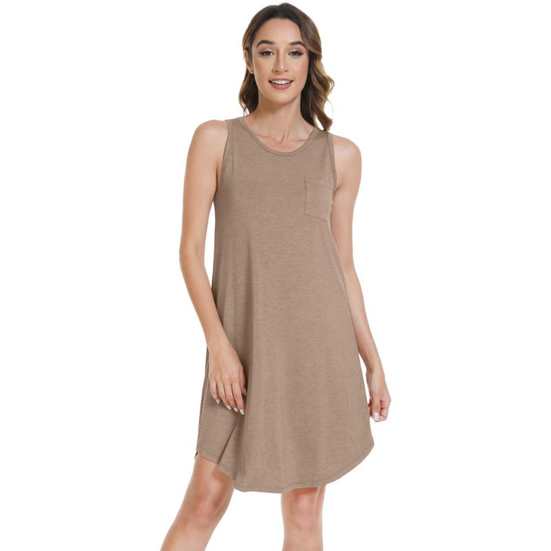 WiWi Tank Crew Neck Nightgown for Women Viscose from Bamboo Sleeveless Sleep Gowns Summer Sleepweer S-XXL, Camel, Small