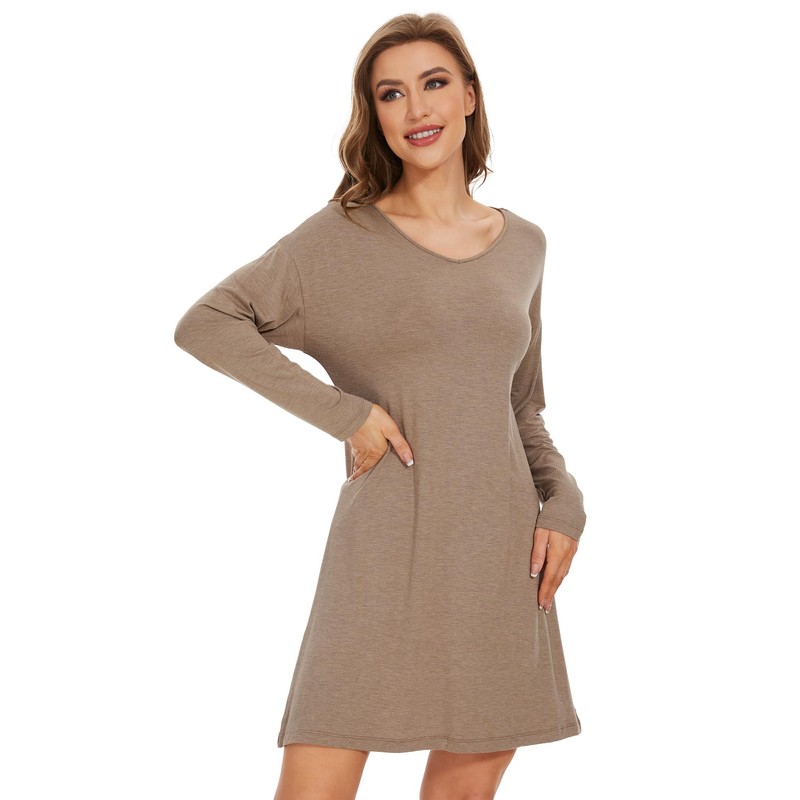 WiWi Viscose from Bamboo Nightgowns for Women Long Sleeve Sleep Shirts Soft Sleepwear Pajamas Nightshirts S-XXL, Camel, Large