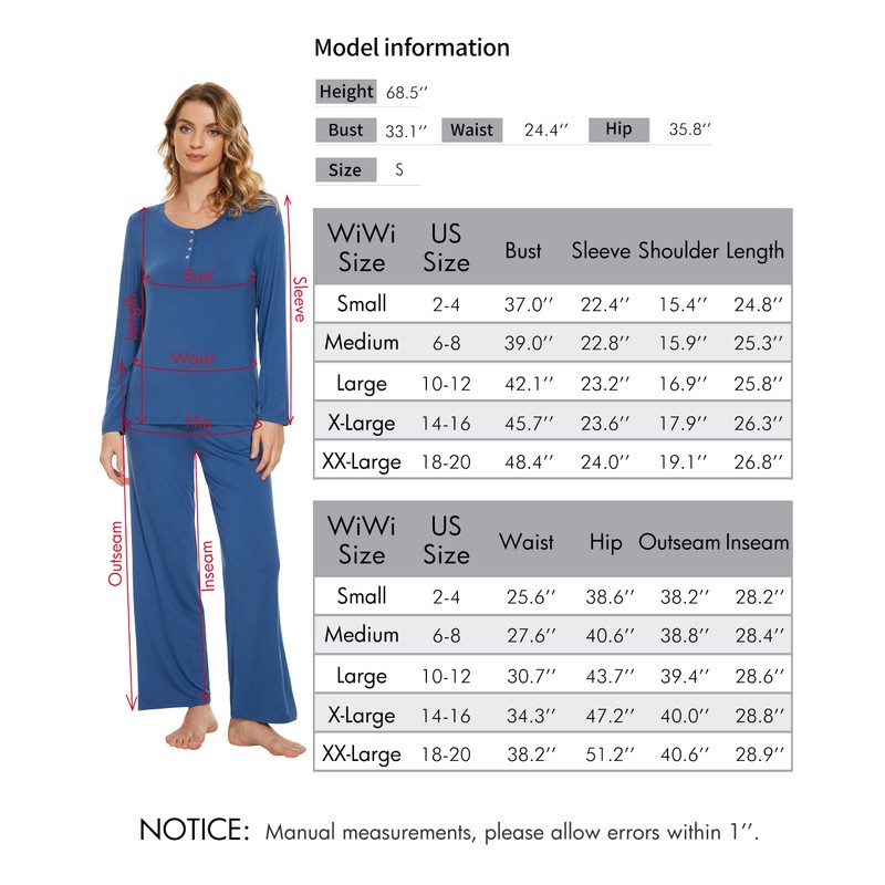 - ✔️【DREAM IN COMFORT】We carefully select the fabric(95% Viscose made from Bamboo, 5% Spandex) of pajama sets to create the softness that soothes the skin, makes you comfortable in the lounge and sleeping time. Excellent breathability and moisture-wicking performance allow you to enjoy superior comfort.