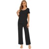 - 【SIMPLE DESIGN】Short sleeve top and long pants is the classic combination. The top features classic scoop neck and short sleeve. Full-length pants with side pockets are very practical, and elastic waistband give you more comfortbale fit.