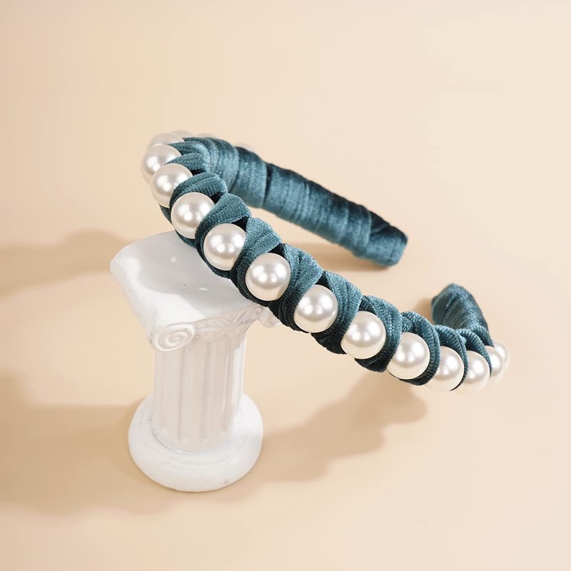 Wiwpar Pearl Headbands Velvet Hair Hoop with Pearls Elegant Pearl Head Band No Slip Fashion Hair Accessories for Women Girls (Green)