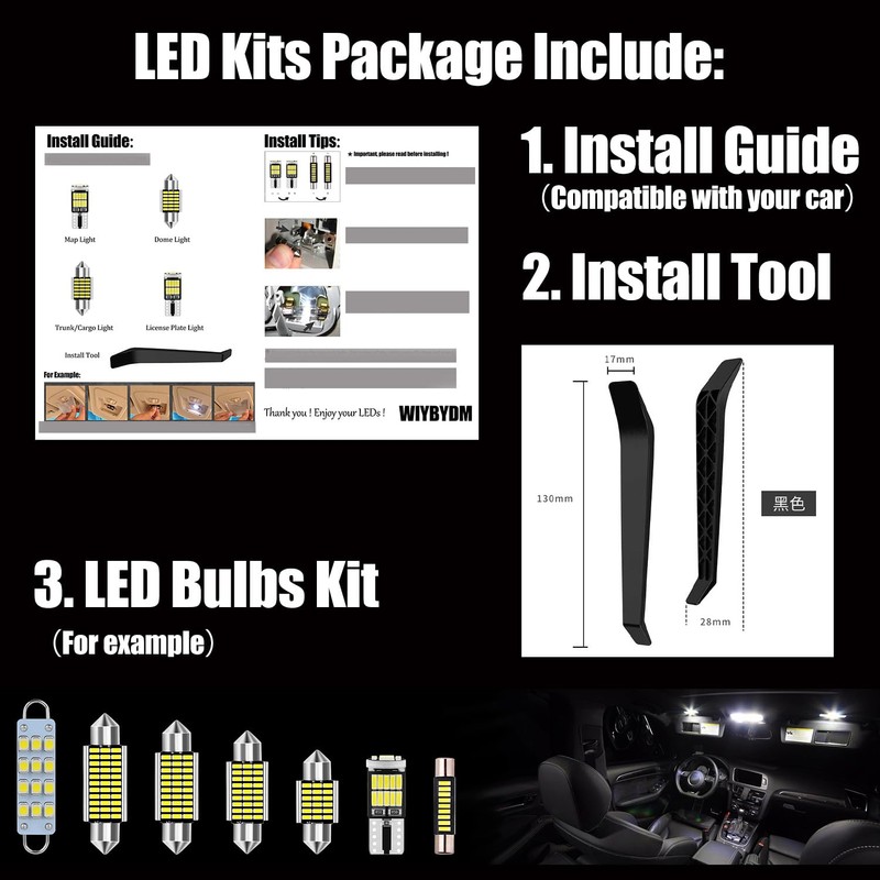 - 【Package includes 20pcs LED bulbs + 1pc install tool + 1pc install guide】Remplacemnt for Map Light, Dome Light, Courtesy Door Light, Running Board Light, Glove Box Light, Vanity Mirror Light, Trunk/Cargo Light, License Plate Light.