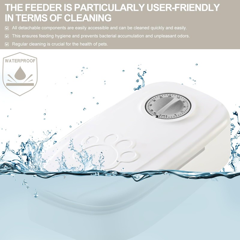 1. Timed Feeding The user-friendly 48-hour timer allows precise control of feeding times, so your pet receives their food regularly and on time.