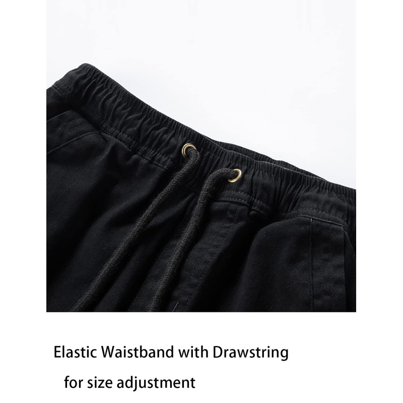 WIYOSHY Boys' Solid Color Drawstring Elastic Waist Chino Pants (as1, Numeric, Numeric_6, Regular, Lucky Black)
