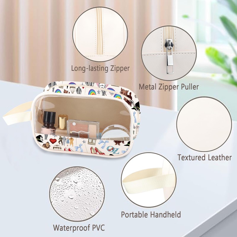 - ♥ Material der Make-up-Tasche: aus hochwertigem PU-Leder und dickem, transparentem PVC-Material, erzielt 100% wasserdichte Wirkung, ist leicht zu reinigen, kratzfest und verlängert die Lebensdauer.