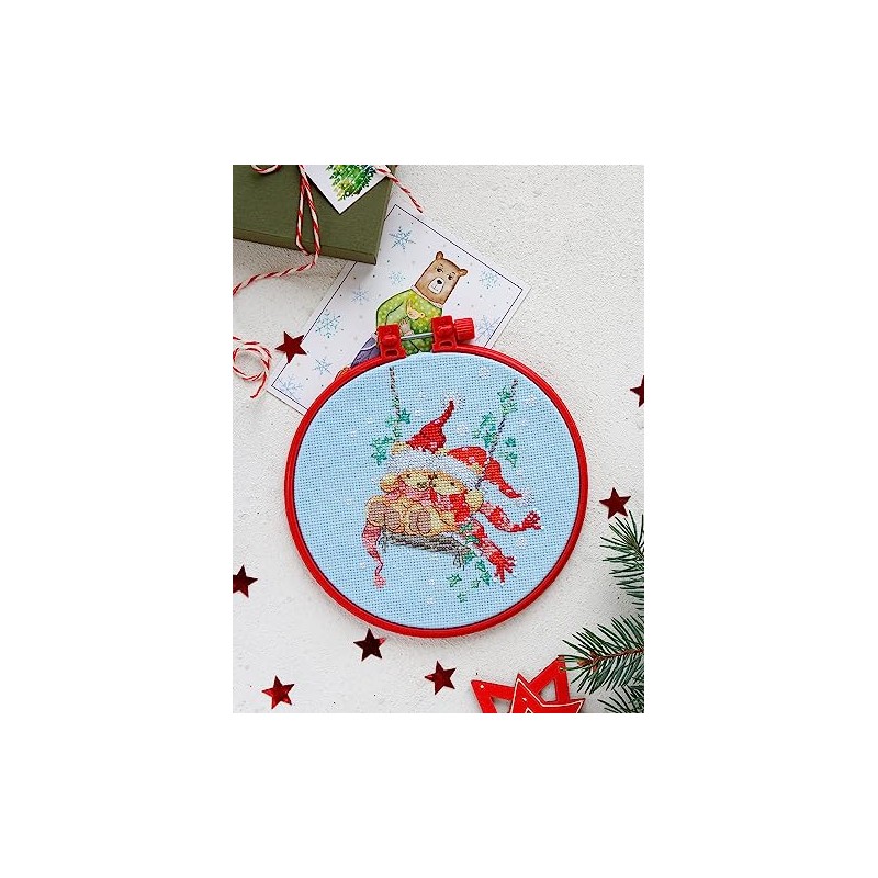 - Package contents: Canvas 100% cotton (blue 14 count), beads, convenient symbol scheme + instruction in 8 languages, needles, floss on a convenient organizer - 100% cotton (20 colours), Dimensions 15*15 cm / 5,91*5,91 inches. Embroidery hoop is included.