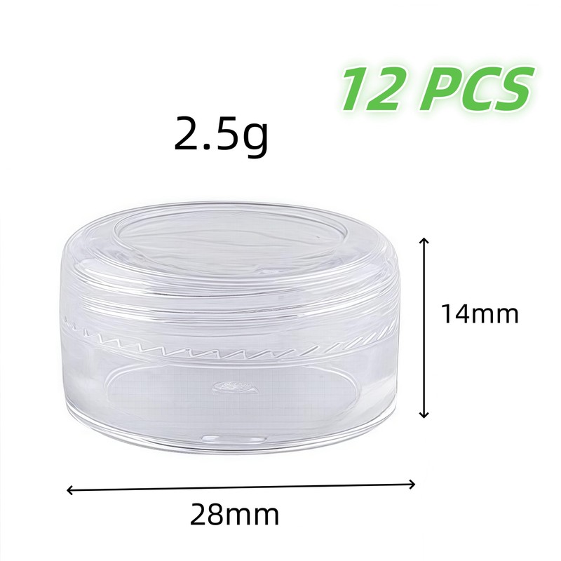 - PRODUCT AND SIZE:You will receive 12 miniature sample containers, each measuring 28 x 14 mm with a capacity of 2.5 g. Please make sure the size is appropriate before buying